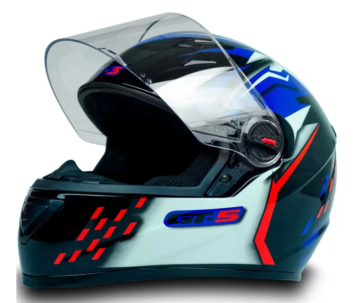 CAPACETE FW3 GT5 PRETO COM AZUL VERMELHO E BRANCO Com design esportivo e diferenciado, o capacete FW3 é perfeito para todo motociclista. Leve, estiloso e confortável, este moderno capacete vem com entrada e saída de ar, é fabricado em ABS super resistente e possui certificado de segurança. O melhor para você motociclista andar por aí com muita segurança, conforto e estilo!