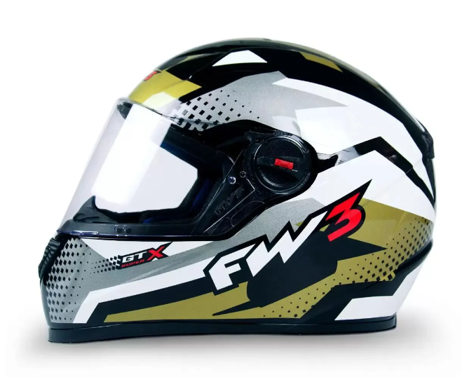 CAPACETE FW3 GTN SUPER DOURADO COM CINZA E BRANCO