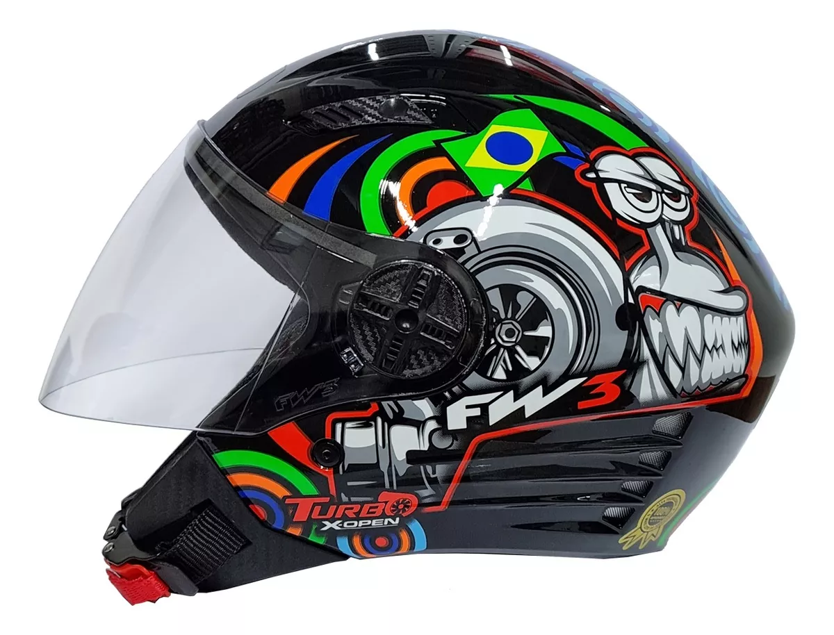 Capacete Modelo X Open Turbo - FW3 Preto Brilhante Tamanho